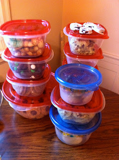 My scones are decent, but I wouldn't say I did a GREAT job making them. I've never made scones before, so I probably need to perfect my method. And probably - once again - follow the recipe a little better. Yes, I messed up again. I pulled my scones out of the oven and they are very flat, whereas Gina's are very raised. Lo and behold - I read the recipe wrong. I put in one TEAspoon of baking powder; it calls for one TABLEspoon. That probably makes a lot of difference, huh?